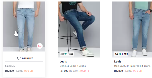 Levis Men Jeans Minimum 75% Discount