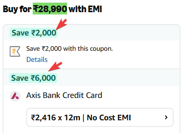 Incl.₹6000 off Axis Bank CC EMI + ₹2000 Coupon