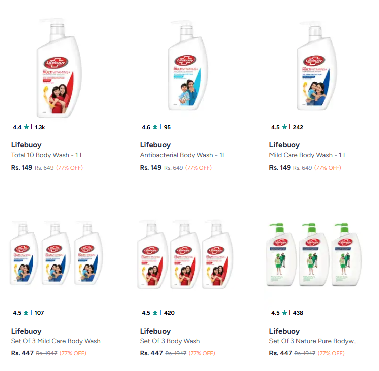 Lifebuoy Body Wash And Shower Gel @ Up to 77% Discount, Available on Myntra.