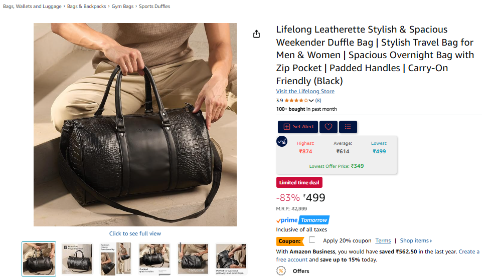 Lifelong Leatherette Stylish & Spacious Weekender Duffle Bag | Stylish Travel Bag for Men & Women | Spacious Overnight Bag with Zip Pocket | Padded Handles | Carry-On Friendly (Black).