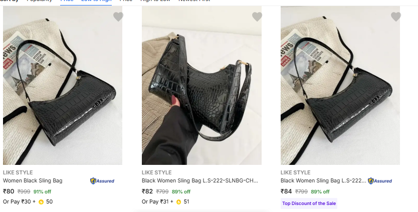 Like Style Sling Bags @ Up to 91% Discount | Start ₹89, Available on Flipkart.