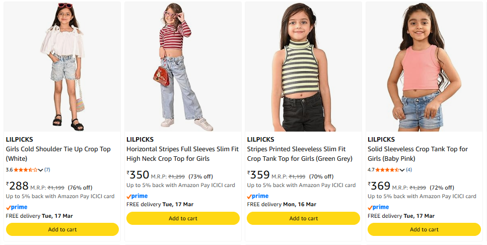 LILPICKS Girls Tops strating @ ₹288