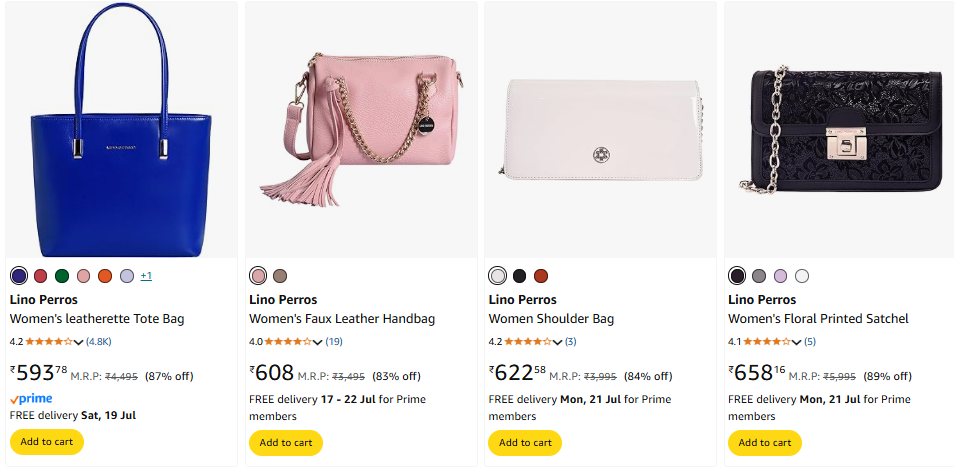Lino Perros Women's HandBag Upto 89% Discount On Amazon.