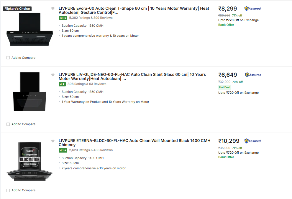 Livpure Chimney at minimum 70% Discount is available online in India (70% off) on Flipkart.