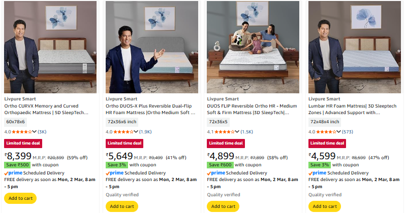 Livpure Smart Mattress starting @ ₹4299