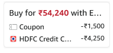 Incl. ₹4250 Discount HDFC Bank CC EMI.