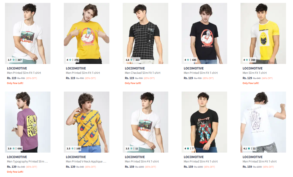 LOCOMOTIVE Men's T-Shirt Starting @ ₹119