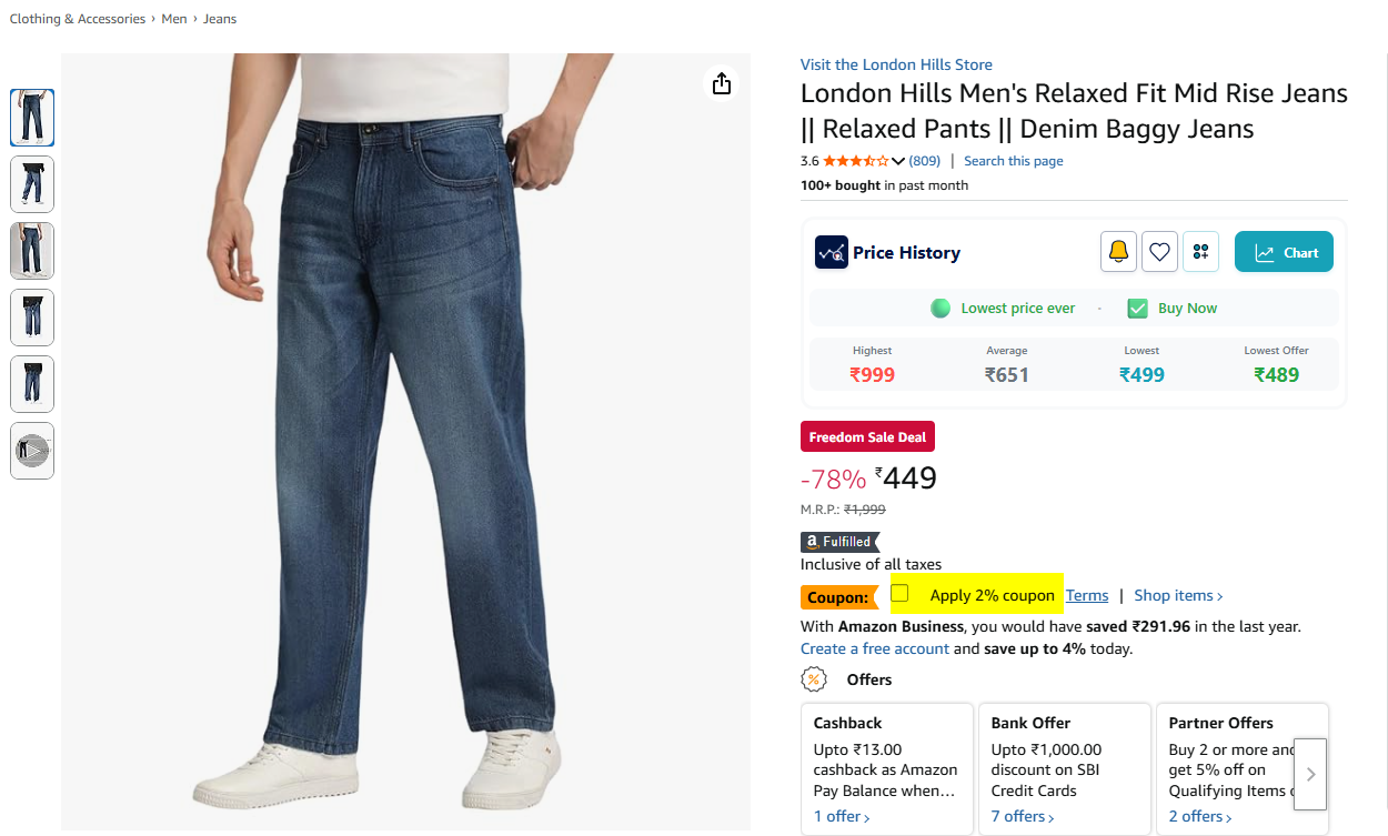 London Hills Men's Relaxed Fit Mid Rise Jeans || Relaxed Pants || Denim Baggy Jeans