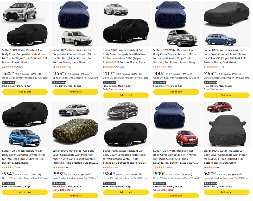 LOOT - Car Body Cover @ Starting ₹325, available on Amazon.