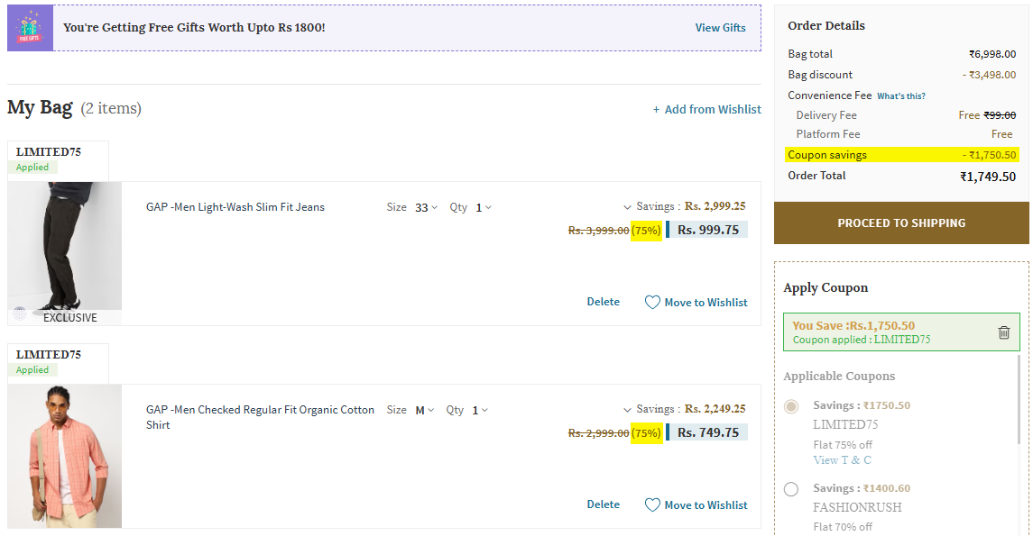LOOT | GAP Brand Clothing @ Flat 75% OFF.