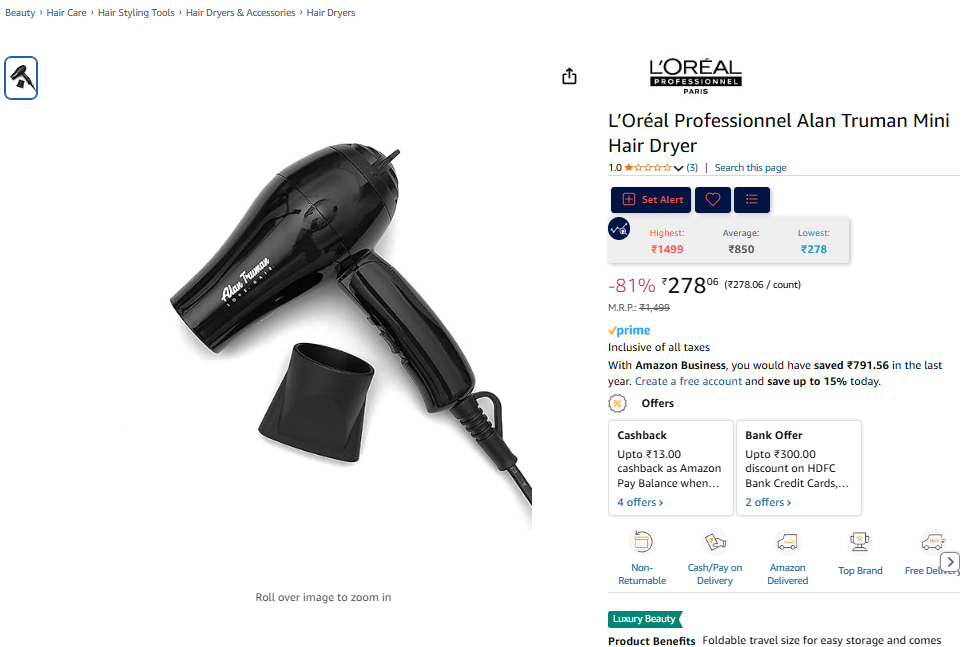 L’Oréal Professionnel Alan Truman Mini Hair Dryer.