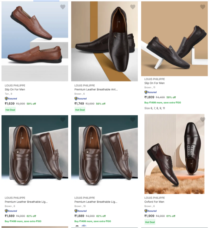 Louis Philippe Men’s Formal Shoes @ Minimum 50% Discount is available online in India (50% off) on Flipkart.