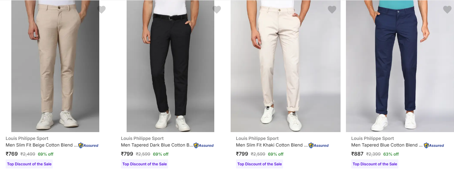 Louis Philippe Sport Men's Trousers upto 69% Discount is available on Flipkart.