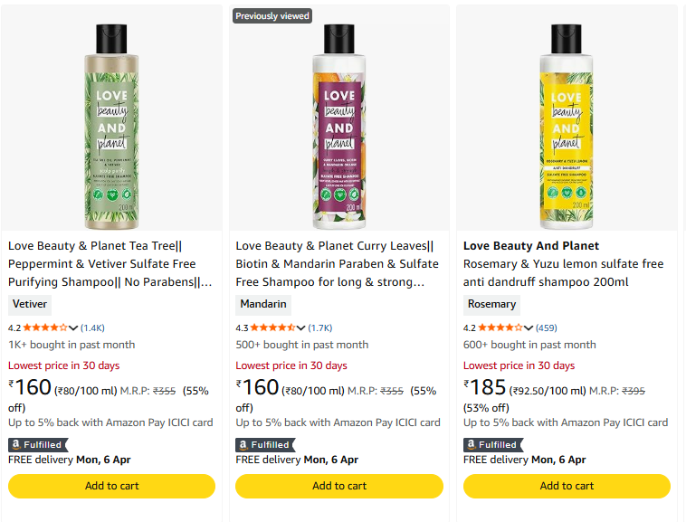 Love Beauty & Planet Beauty Products Upto 55% discount on Amazon.