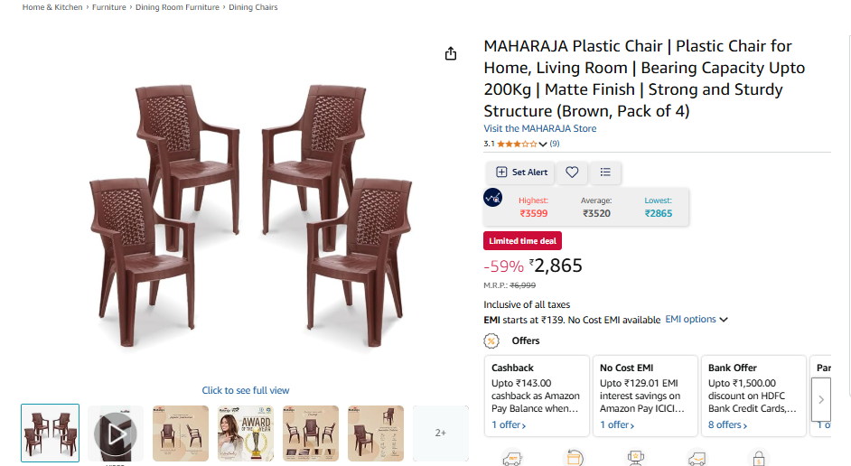 MAHARAJA Plastic Chair | Plastic Chair for Home, Living Room | Bearing Capacity Upto 200Kg | Matte Finish | Strong and Sturdy Structure (Brown, Pack of 4)