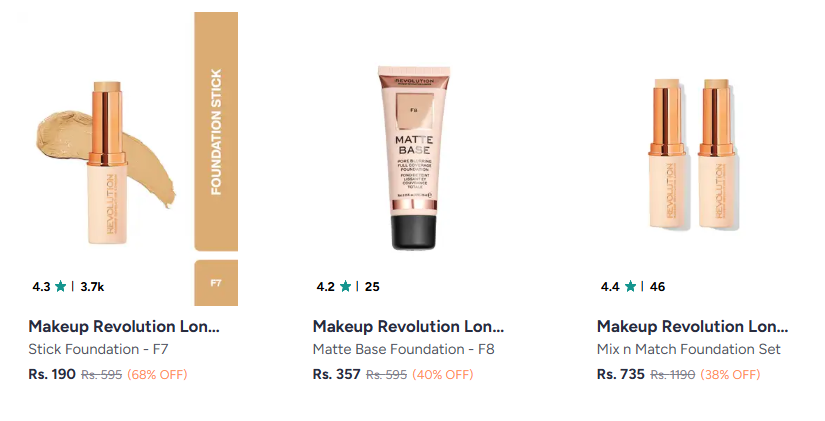 Makeup Revolution London @ Up to 68% Discount, Available on Myntra.