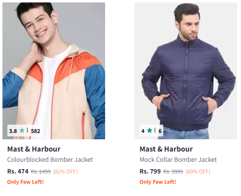 Mast And Harbour Men's Jackets @ Minimum 80% Discount, Available on Myntra.