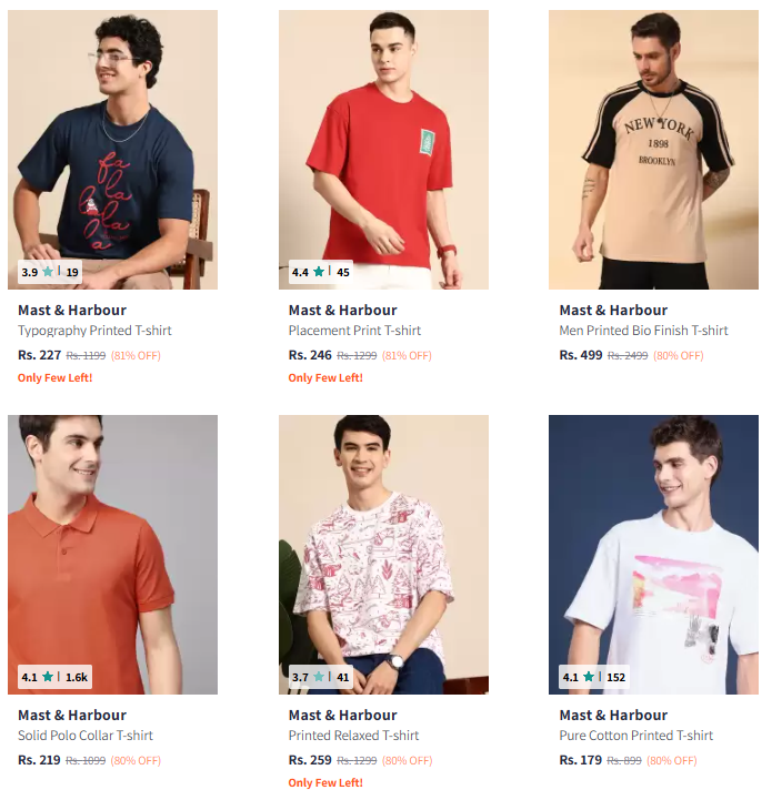Mast And Harbour T-shirts @ Minimum 80% Discount, Available on Myntra.
