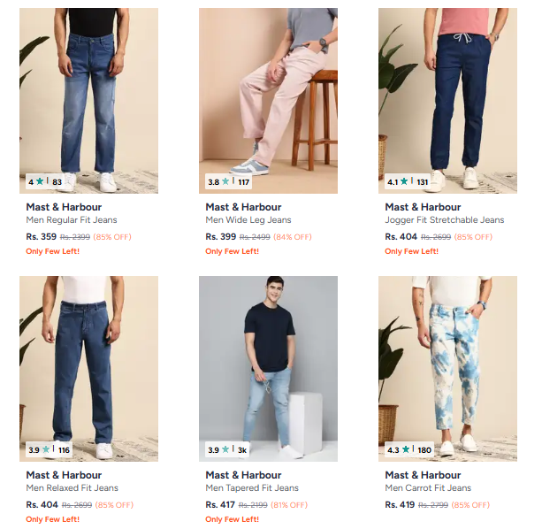 Mast & Harbour Men's Jeans Up to 85% Discount