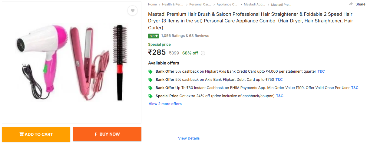 Mastadi Premium Hair Brush & Saloon Professional Hair Straightener & Foldable 2 Speed Hair Dryer (3 Items in the set) Personal Care Appliance Combo (Hair Dryer, Hair Straightener, Hair Curler).