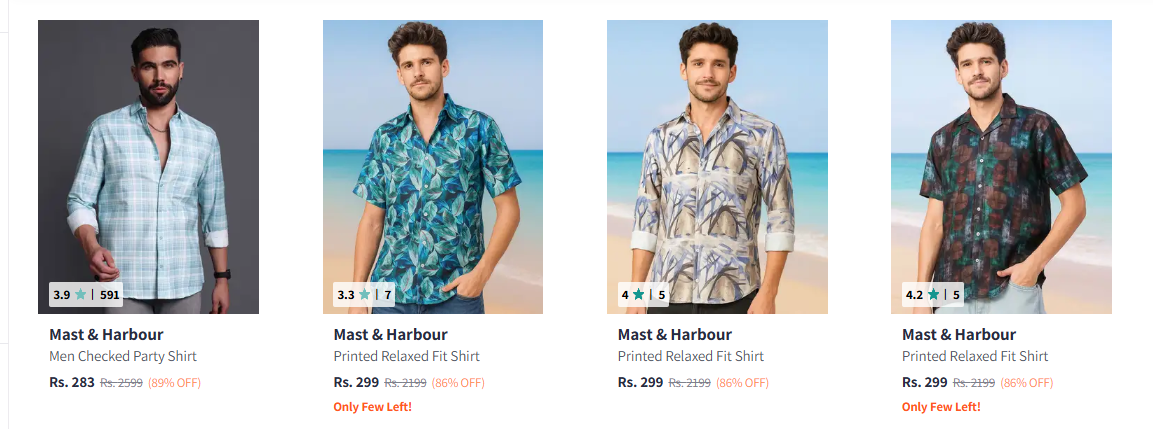 Mast and Harbour Men's Shirts upto 89% Discount available online in India on Myntra. This deal was updated by @radhika on 09th November, 2025 at 11:14 AM.