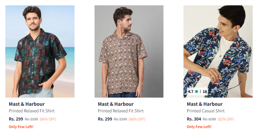 Mast & Harbour Men's Casual Shirts upto 86% Discount is available on Myntra.