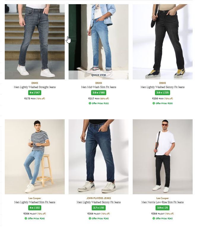 Men Lightly Washed Skinny Fit Jeans Starting @ 175