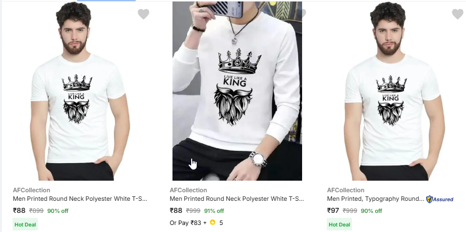 Men's T Shirts at Starting @ ₹88