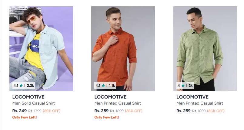 Men shirt Starting @ ₹137 is available online in India on Myntra.