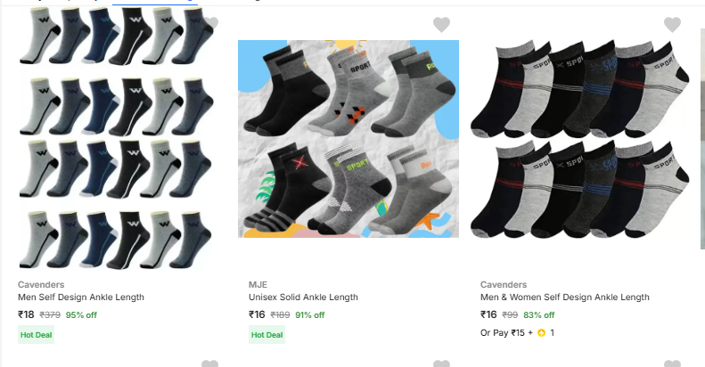 Men's and women's socks start at ₹16 and are available on Flipkart.