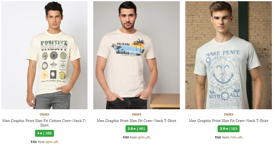 Men's T-Shirts starting at ₹40, available on Ajio.