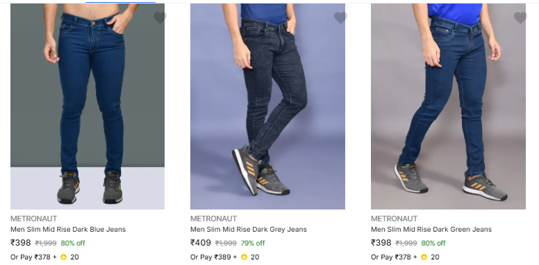Metronaut Brand Men's Jeans @ Up to 80% Discount | Start ₹398, Available on Flipkart.