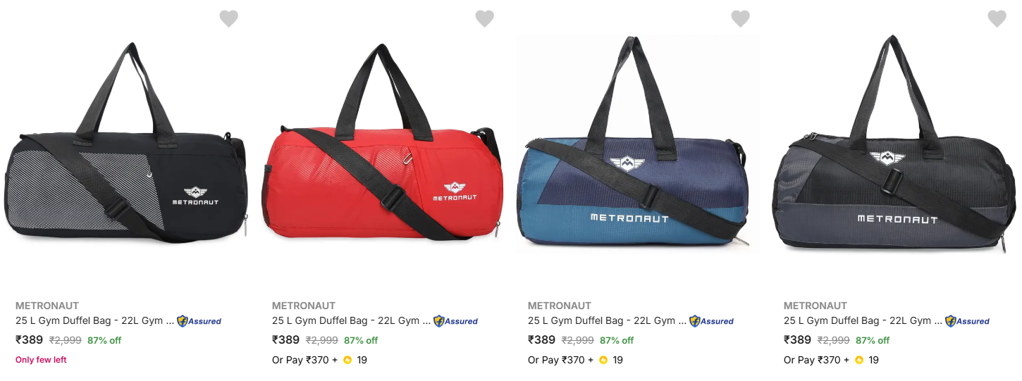 Metronaut Duffel Bags upto 87% Discount is available on Flipkart.