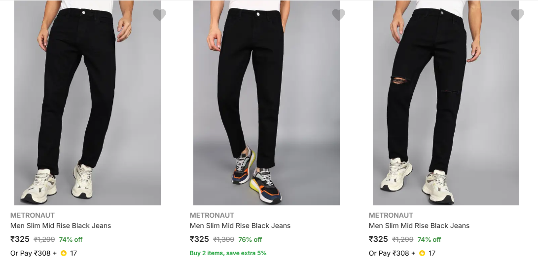 Metronaut Men's Jeans upto 76% Discount is available on Flipkart.