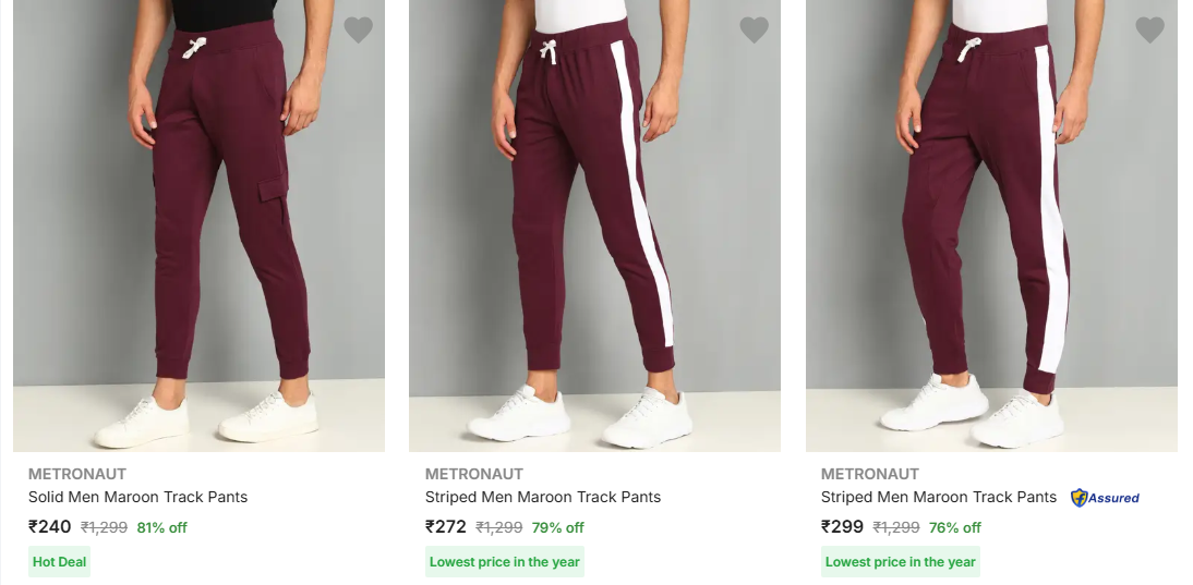 Metronaut Men's Track Pants upto 81% Discount is available on Flipkart.