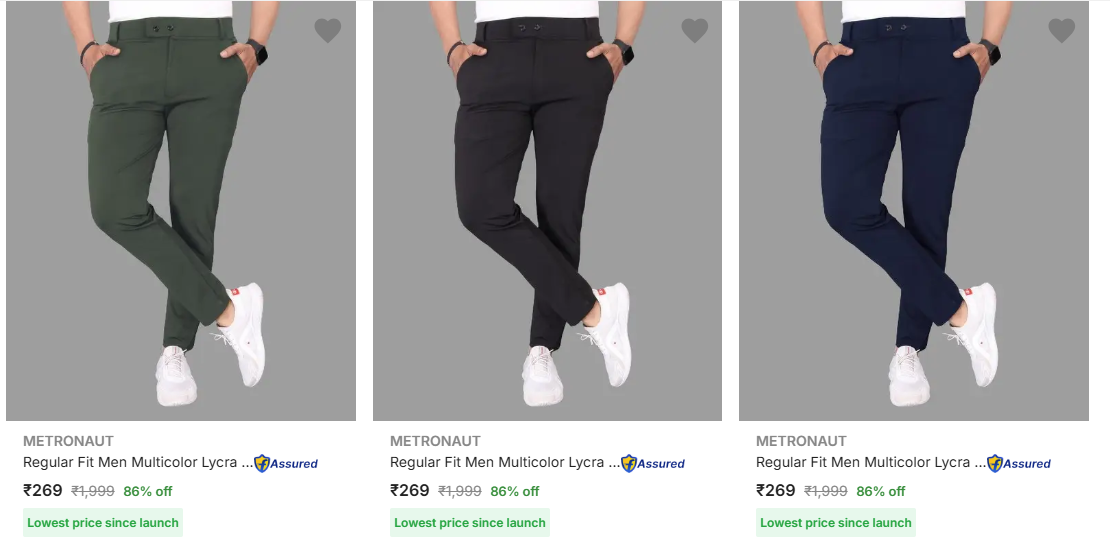 Metronaut Men's Trousers upto 86% Discount is available on Flipkart.