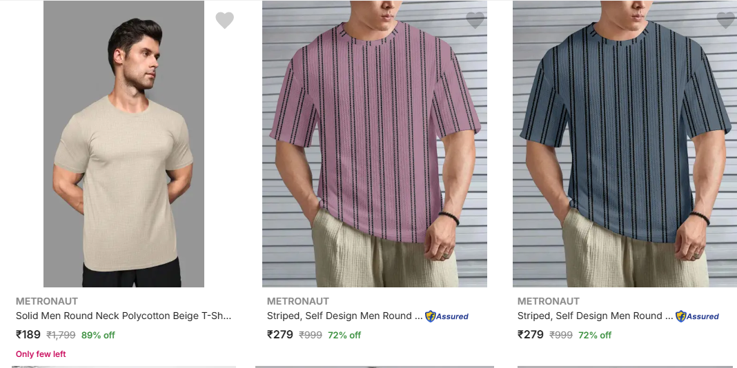 Metronaut Men's T-Shirts upto 89% Discount is available on Flipkart.