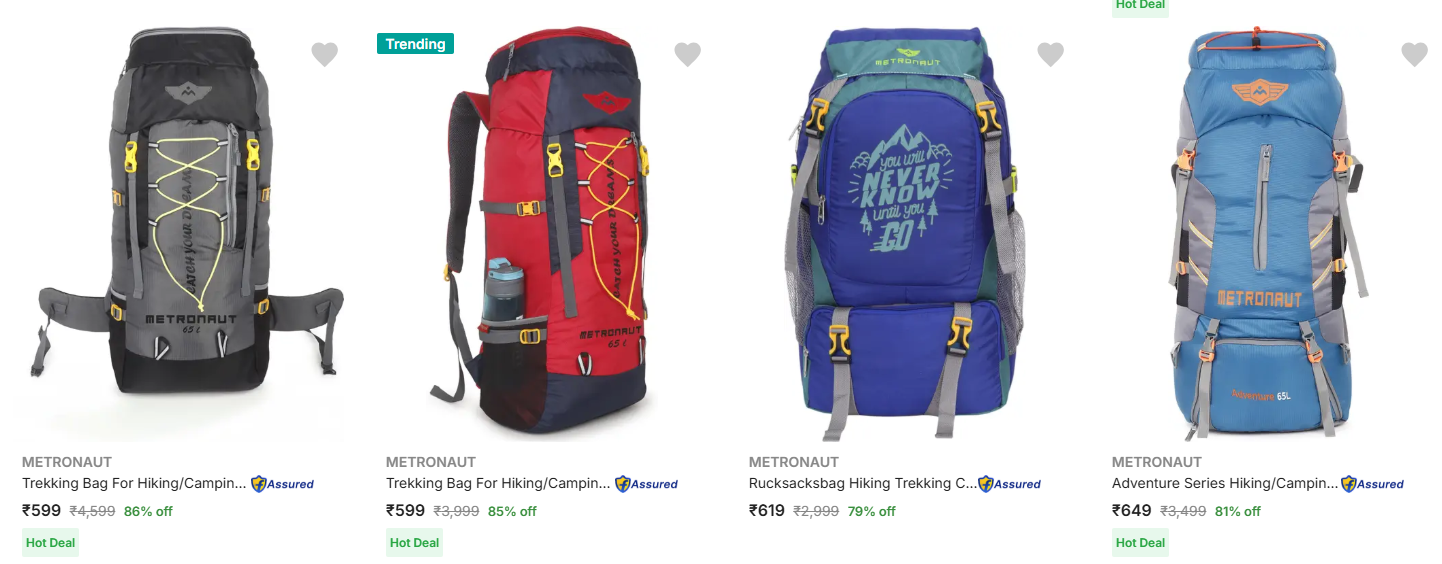 Metronaut Rucksacks upto 86% Discount is available on Flipkart.