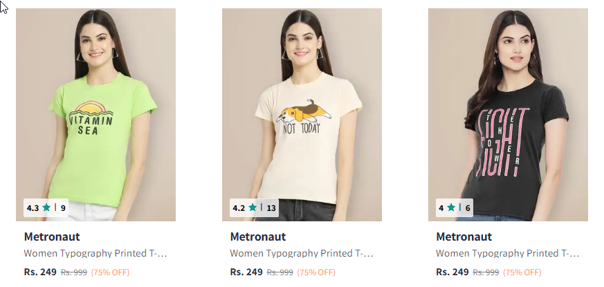Metronaut Women T-shirt Starting @ ₹249