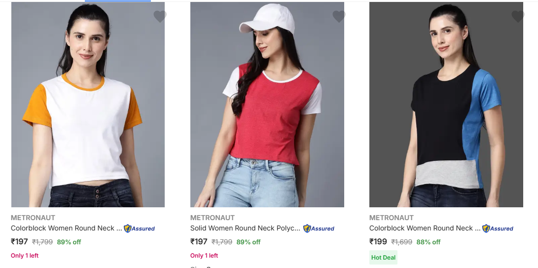 Metronaut Women's T-Shirts upto 89% Discount is available on Flipkart.