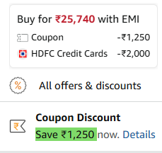 Incl. ₹2250 Off HDFC CC + ₹1500 Off with Coupon