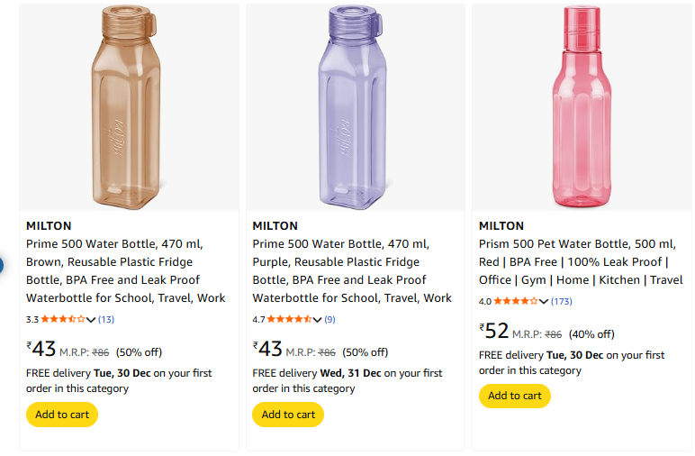 Milton Products from ₹43 is available @ Amazon