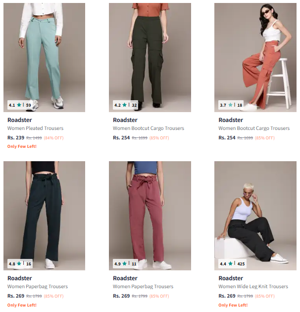 Minimum 80% OFF | Women's Trousers, Availabl eon Myntra.