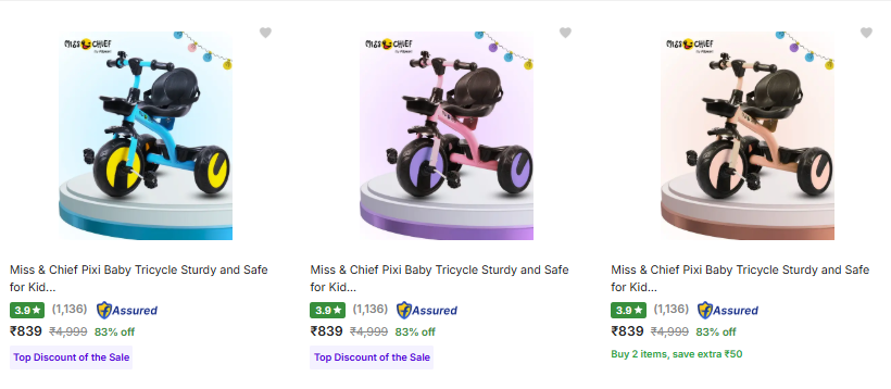 Miss Chief Tricycles Starting @ ₹839 on Flipkart.