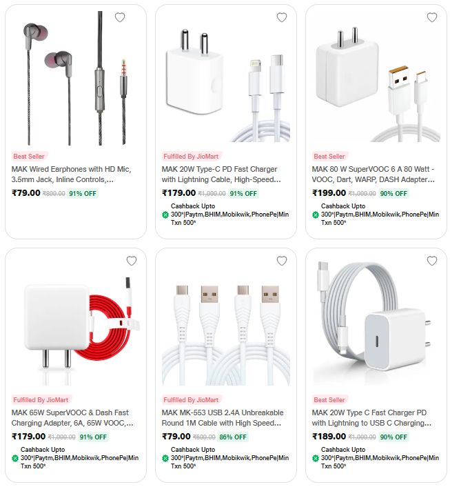 Mobile & Tablet Accessories at a Minimum 80% Discount, Available on JioMart.