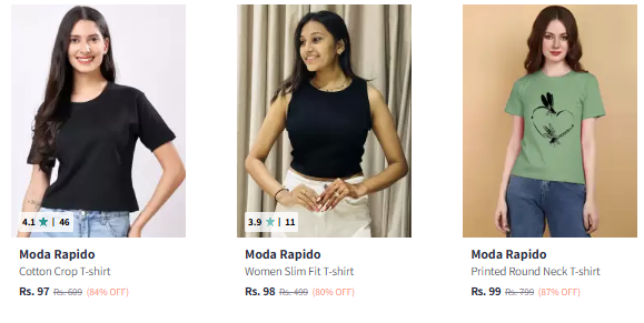 Moda Rapido Women's Top Starting @ ₹97 available online in India at an offer price of ₹97 on Myntra. Discounted Price: ₹97. This deal was updated by @ruchika on 02nd October, 2025 at 9:51 AM.