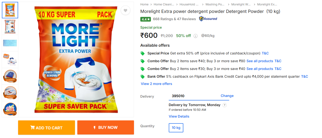 Morelight Extra power detergent powder Detergent Powder (10 kg).