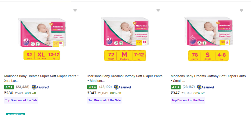 Morisons Baby Dreams Baby Diapers Starting @ ₹280 on Flipkart.
