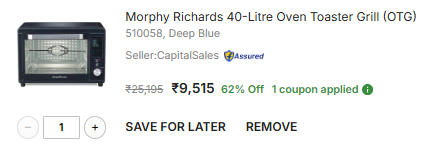 Morphy Richards 20-Litre Oven Toaster Grill (OTG) (20R510062, Black/Silver)