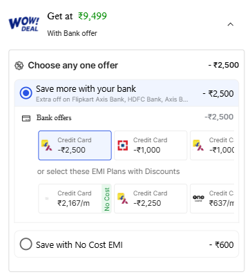| (-) 💳 Use Flipkart Axis Bank Credit Card | (₹2,500) |